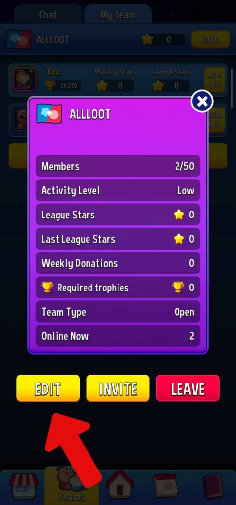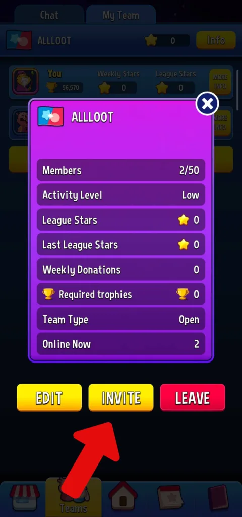 First of all, you have to reach 550 trophies (it was 1300) to unlock the “Teams” tab.