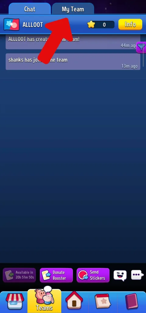 First, open the “Teams” section and tap on the “My Team” tab at the top.