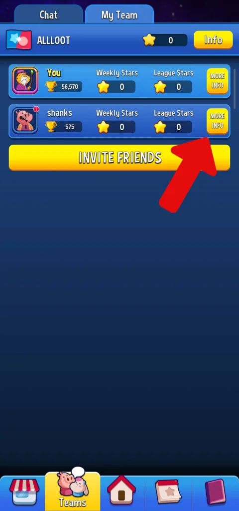 Next, find the player you want to remove, and tap on the “More Info” button next to their name.
