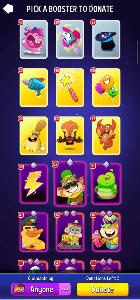 • Free donations: your teammates can send you boosters and stickers each day, plus you can make one request every 24 hours for a random item that your teammates can help you collect.