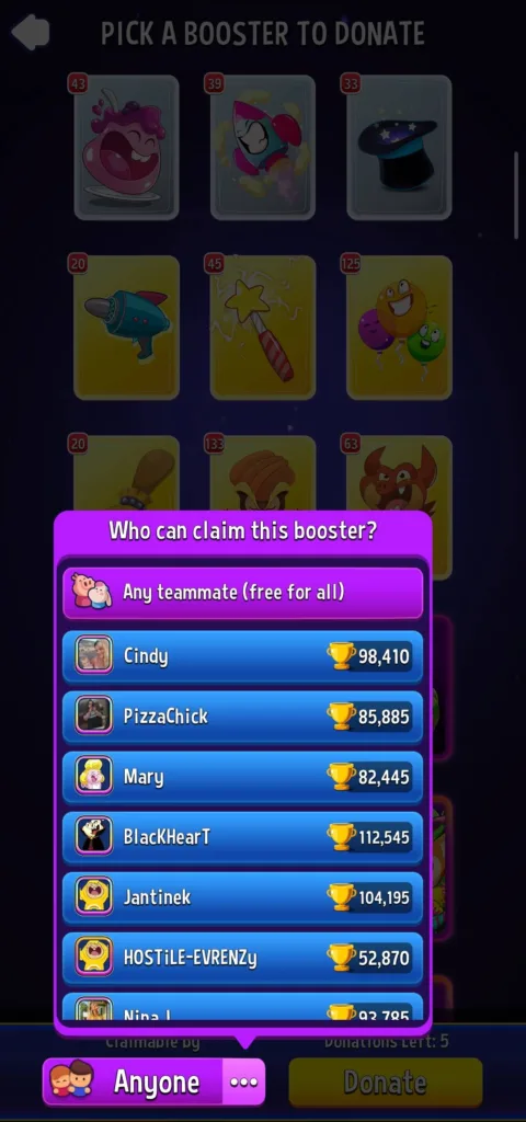 Now, you can choose “Any teammate” to drop the booster in the team chat so the first member who taps “Collect” will claim it, or select a specific teammate by choosing their name from the list.