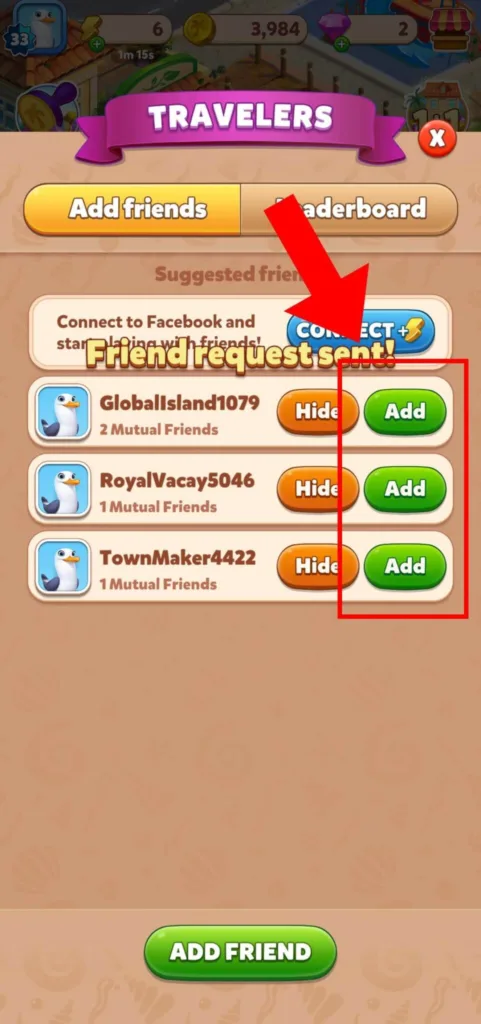 There are three ways to add friends in Travel Town, but not all give free rewards. You’ll earn free rewards only by using the first method and meeting all the conditions that I’ll explain below.